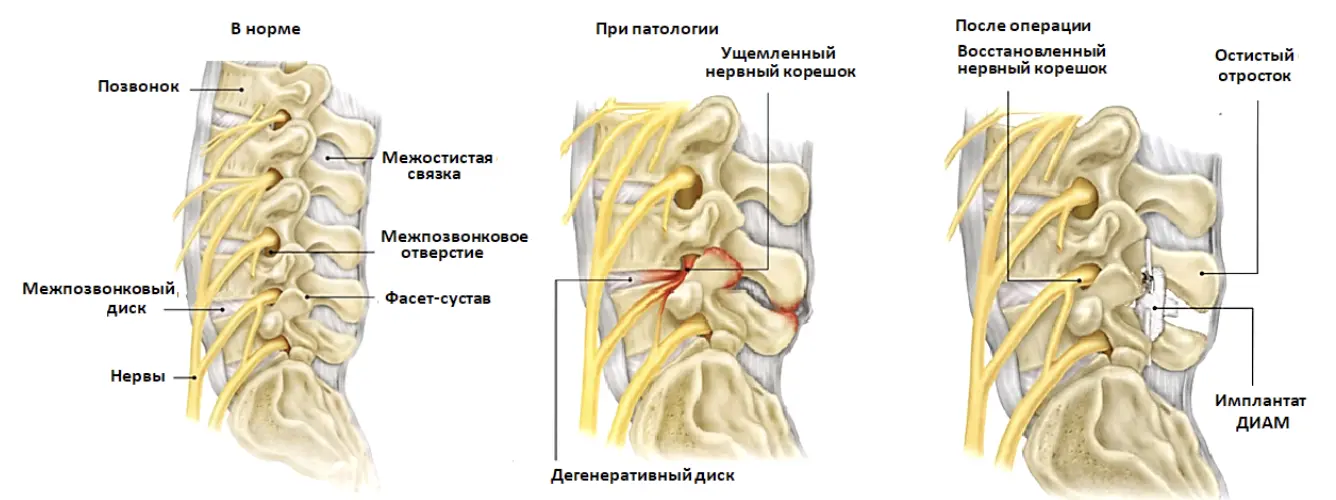 ДИАМ необходим для устранения сегментарной нестабильности (избыточного движения) позвоночно-двигательных сегментов без их жесткой фиксации, разгрузки фасеточных суставов и задней части фиброзного кольца, снижения внутридискового давления, сохранения необходимого объема движений, профилактики синдрома смежного уровня, а также профилактики повторного грыжеобразования.