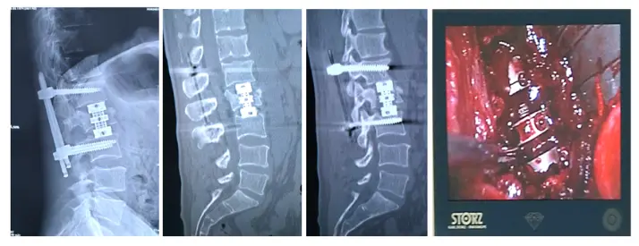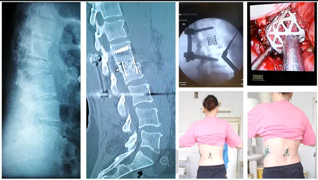 Компрессионно-оскольчатый перелом второго поясничного позвонка. Циркулярный спондилодез 360 градусов с видеоэндоскопической ассистенцией.
